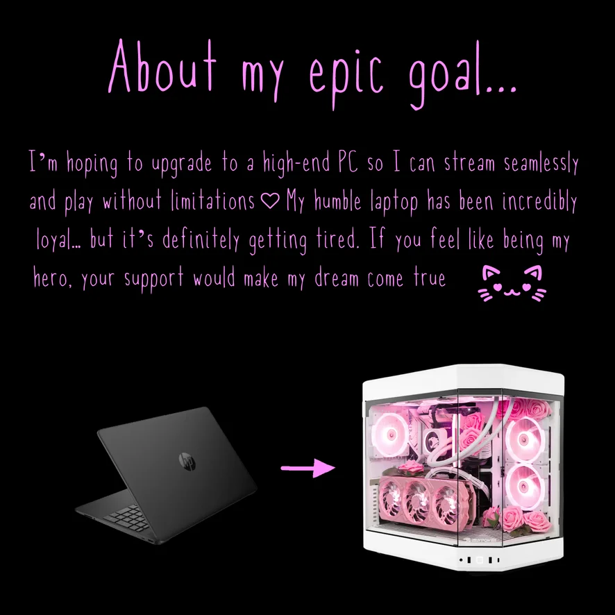 Espero poder cambiarme a una computadora de alta gama para transmitir sin interrupciones y jugar sin limitaciones ♡ Mi humilde laptop ha sido increíblemente leal… pero definitivamente ya está cansadita.